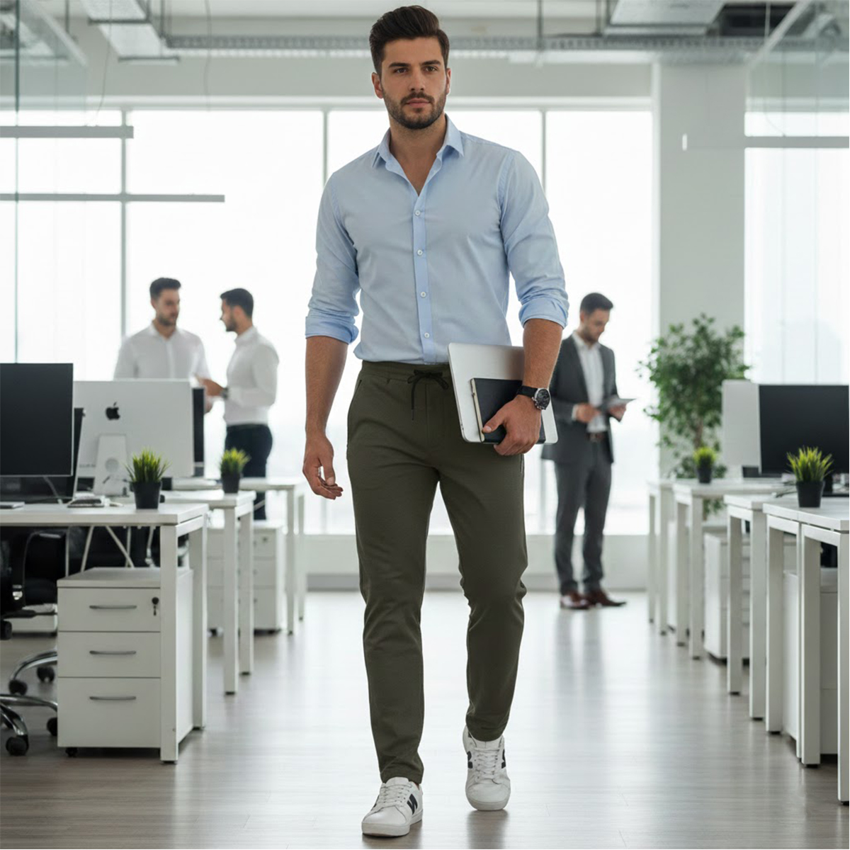 ØLe slim fit : Convient particulièrement bien aux silhouettes fines ou athlétiques. Si vous avez des jambes très musclées (cuisses imposantes), une coupe « Athletic Slim » ou « Tapered » (fuselée) sera souvent plus confortable car elle offre plus de place en haut tout en restant resserrée en bas.