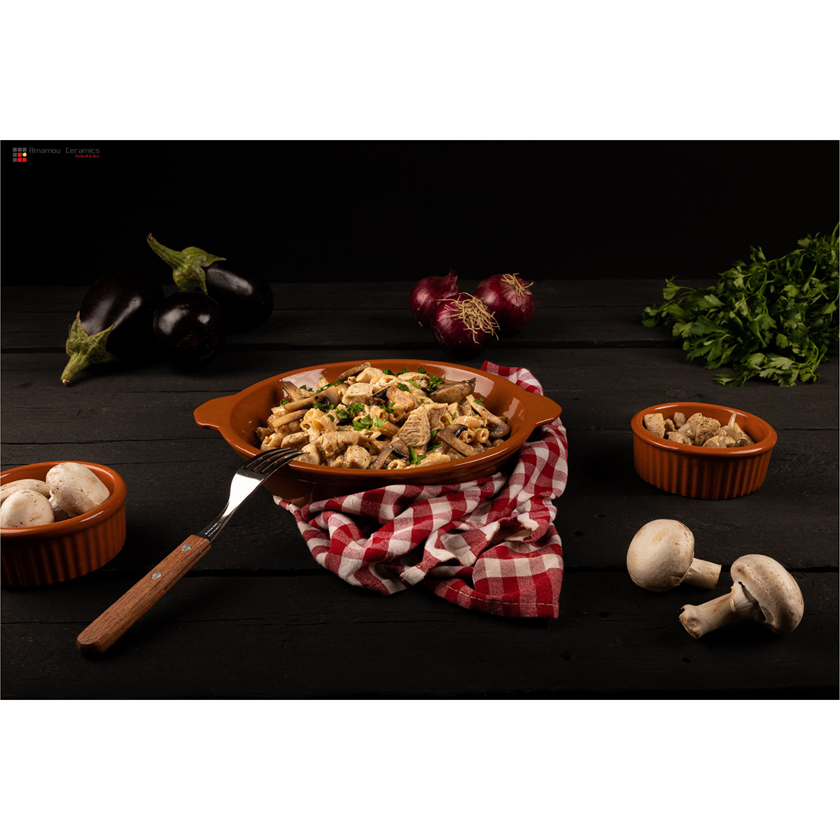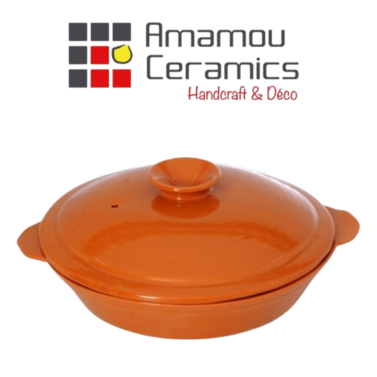 Plat à four tradition rond avec couvercle en Céramique émaillée « pâte à feu » MM