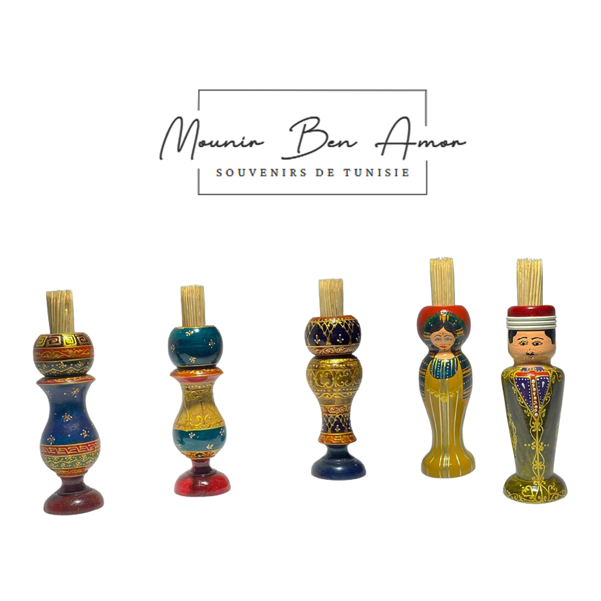 Set de 2 Porte cure dent de décorative peint à la main sur bois d’olivier Sélection de 2 figurines de couple tunisiens en  habit traditionnel  Souvenir De Tunisie M40 د.ت20.700