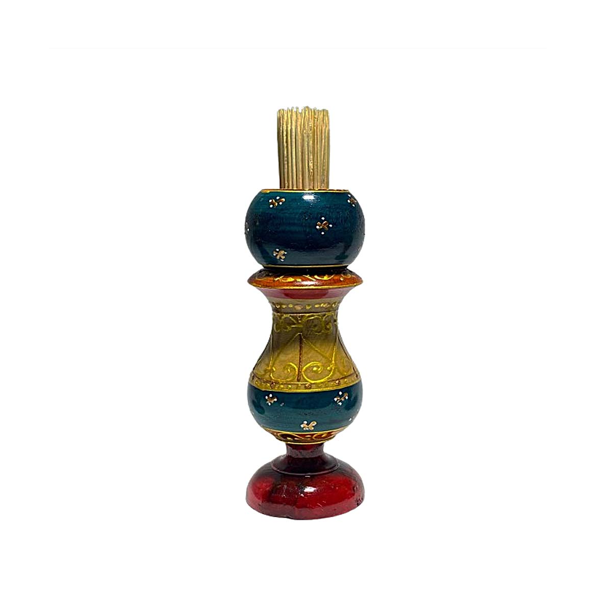 Porte cure dent de décorative design vase rustique peint à la main sur bois d’olivier motif arabesque  Souvenir De Tunisie