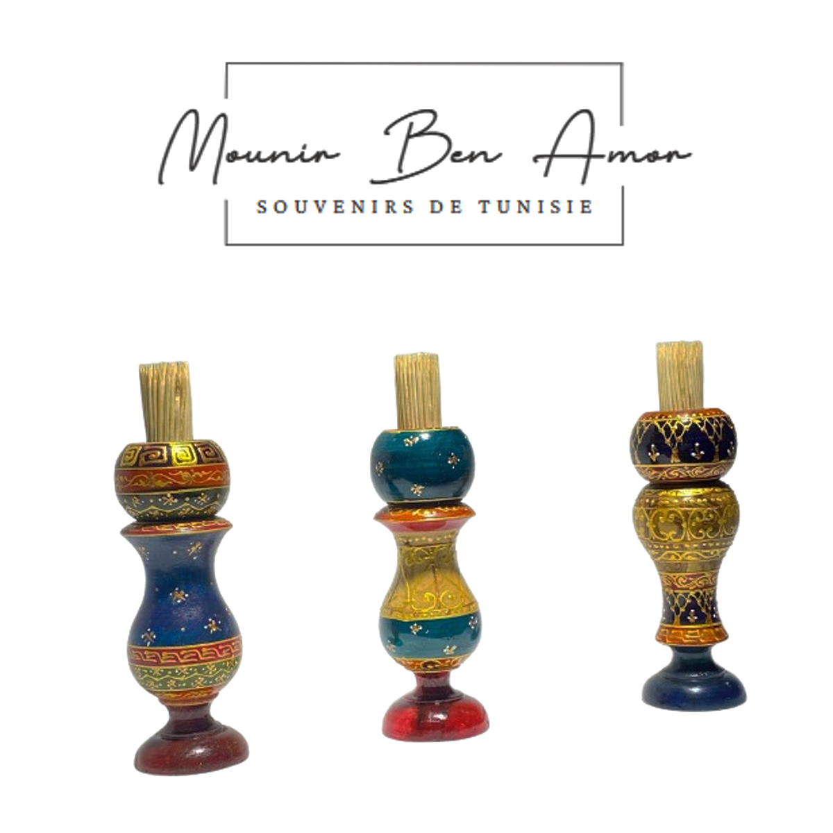 Porte cure dent de décorative design vase rustique peint à la main sur bois d’olivier motif arabesque  Souvenir De Tunisie د.ت20.700