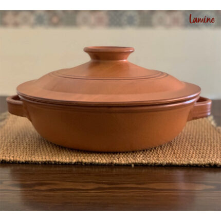Tajine Faitout ronde en caramel effet cuir avec couvercle Ustensiles de cuisson en terre Cuite 3 Litres