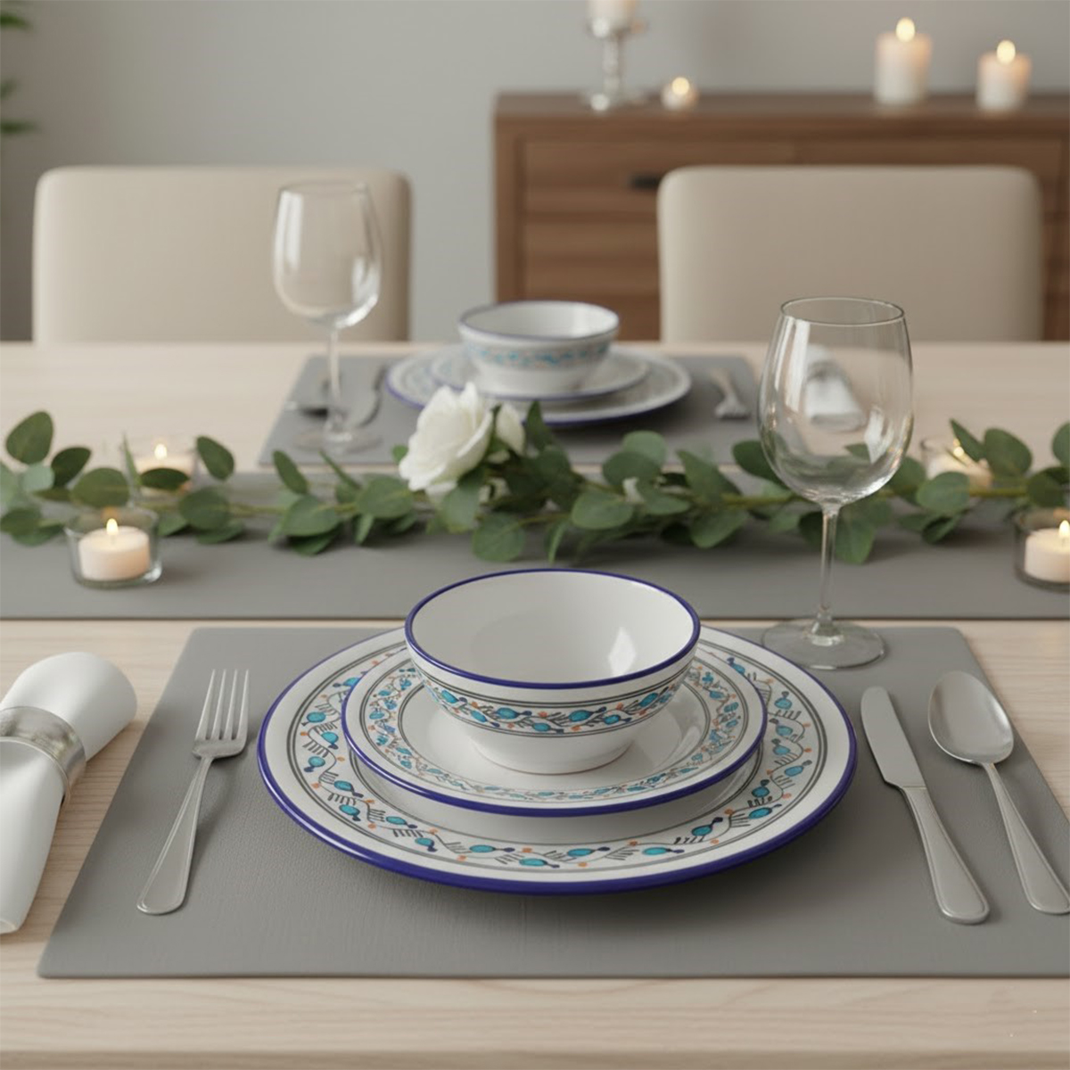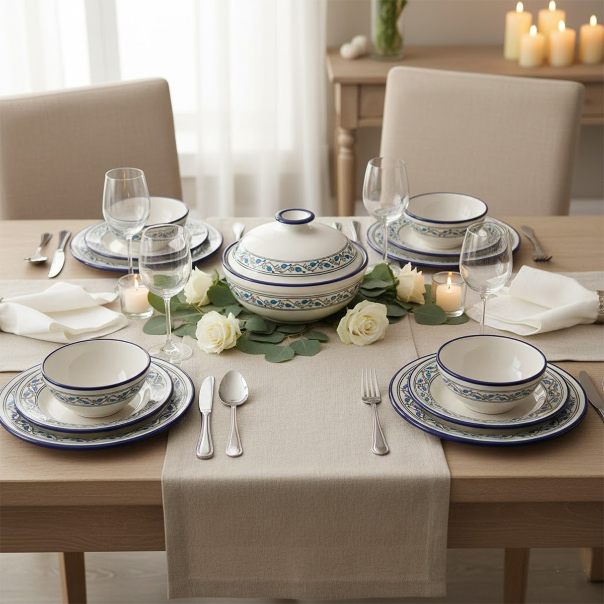 Service a table 20 pièces Byrsa en fine céramique émaillée fait main création peinte à la main