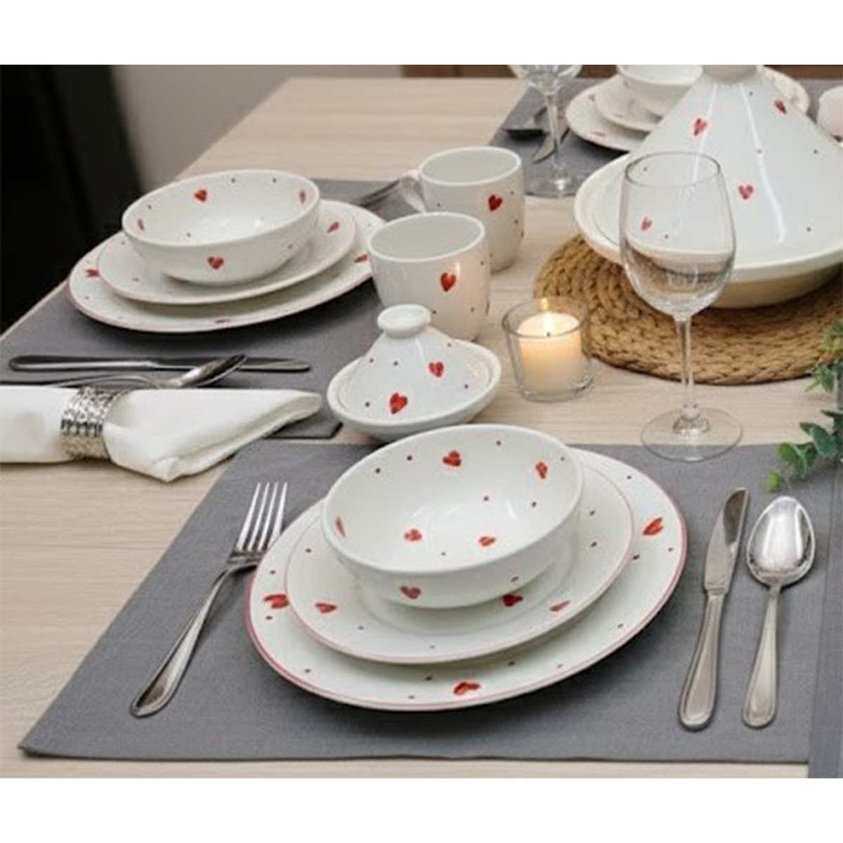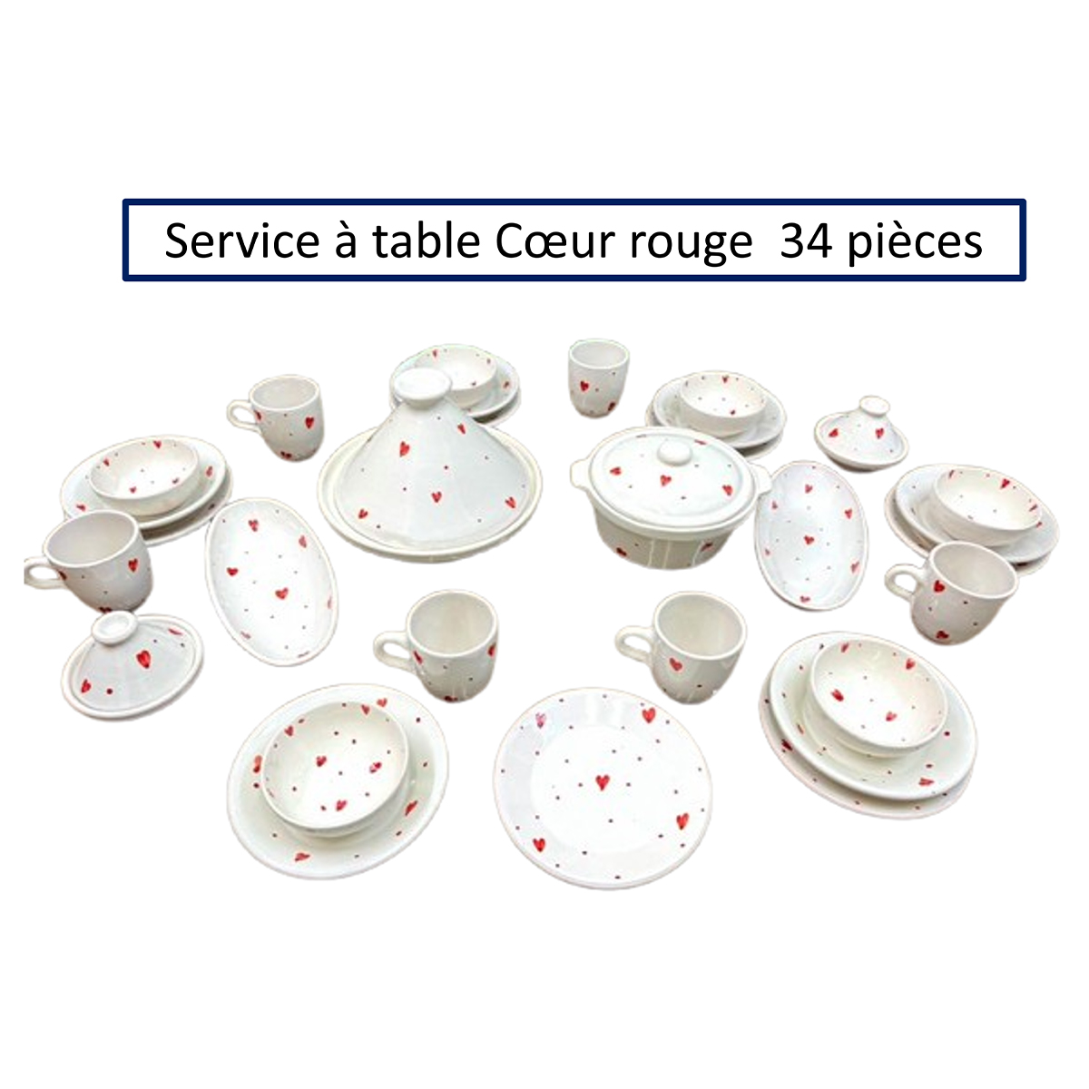 AccueilArt de tableServices de tables Service a table 34 pièces Cœur rouge en fine céramique émaillée fait main création peinte à la main