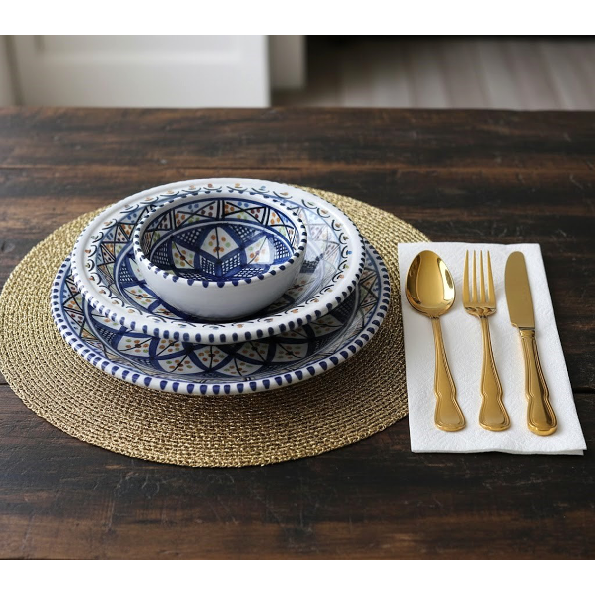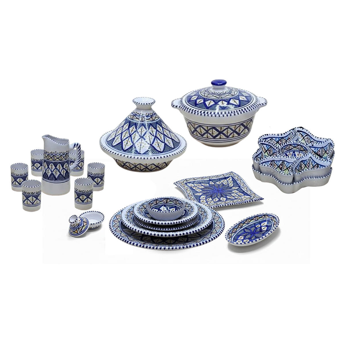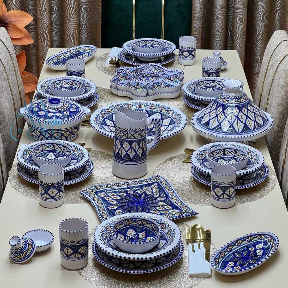 Service a table Tradition Kairouan bleu 44 pièces en fine céramique émaillée fait main création peinte à la main