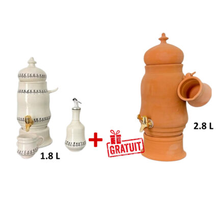 Pack 5 Pièces Baril à huile Distributeur d'huile d'olive  + 1 Pack de 4 Pièces gratuit Distributeur d’eau fraiche en fine céramique fait main motif Tatou amazigh Rupture de stock