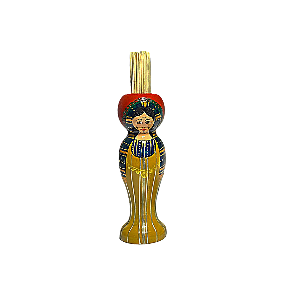 Un Porte cure dent de décorative peint à la main sur bois d’olivier Sélection de figurine d’homme tunisien en  habit traditionnel  Souvenir De Tunisie د.ت24.900