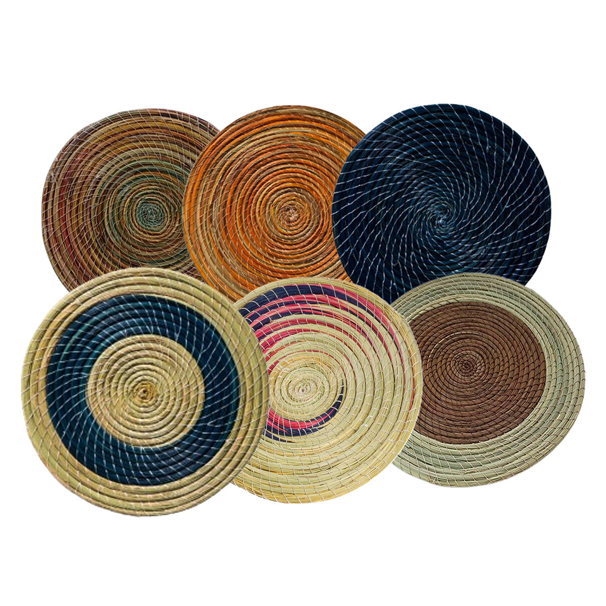 Set de table rond en fibres naturelles végétales teinté tissé à la main moyen modèle coloré grand modèle د.ت39.900