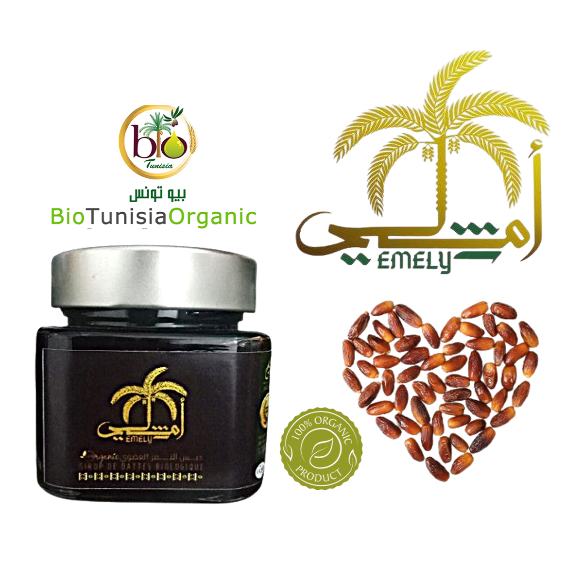 EMELY vous offre des produits naturels à 100% et des produits issus de l’agriculture biologique Tunisienne proviennent des région pilote de la Tunisie, authentique, récolté dans des conditions respectueuses de l’environnement. Chaque produit est une invitation à une vie saine et équilibrée, pour vous offrir la meilleure qualité à un prix accessible et préserver l’emploi, nous sommes fiers de vous offrir des produits de fabrication artisanale à 100% fabriqués en Tunisie