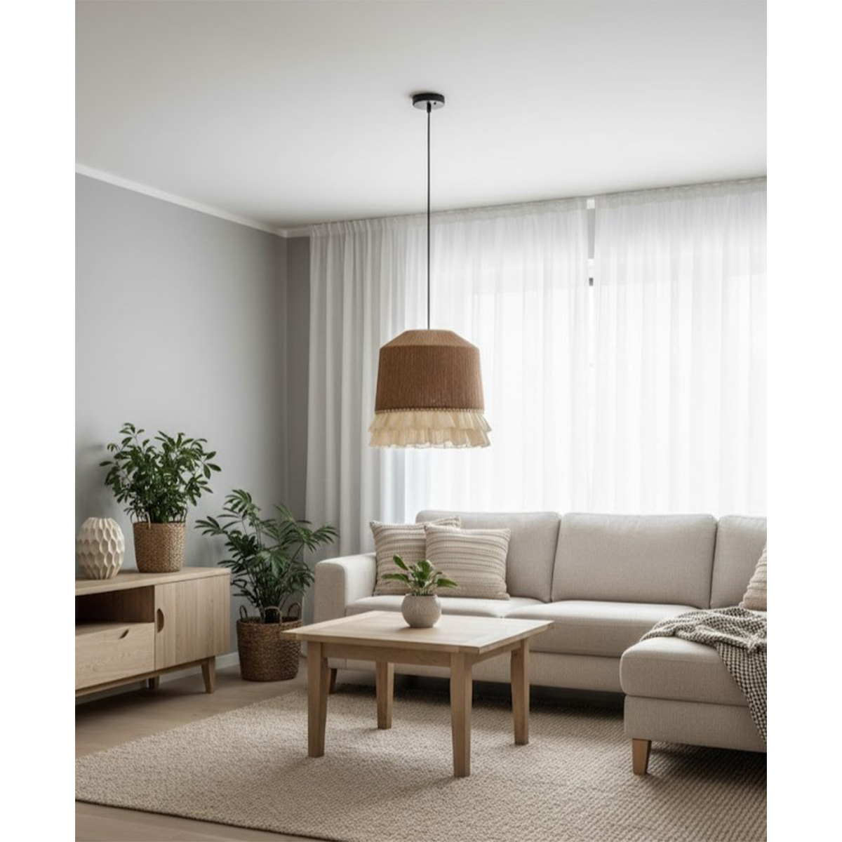 ØSuspension artisanale avec son design combinant esthétique et fonctionnalité. S’adapte à tout espace de vie. Parfaite pour une salle à manger, un coin lecture ou un intérieur minimaliste.