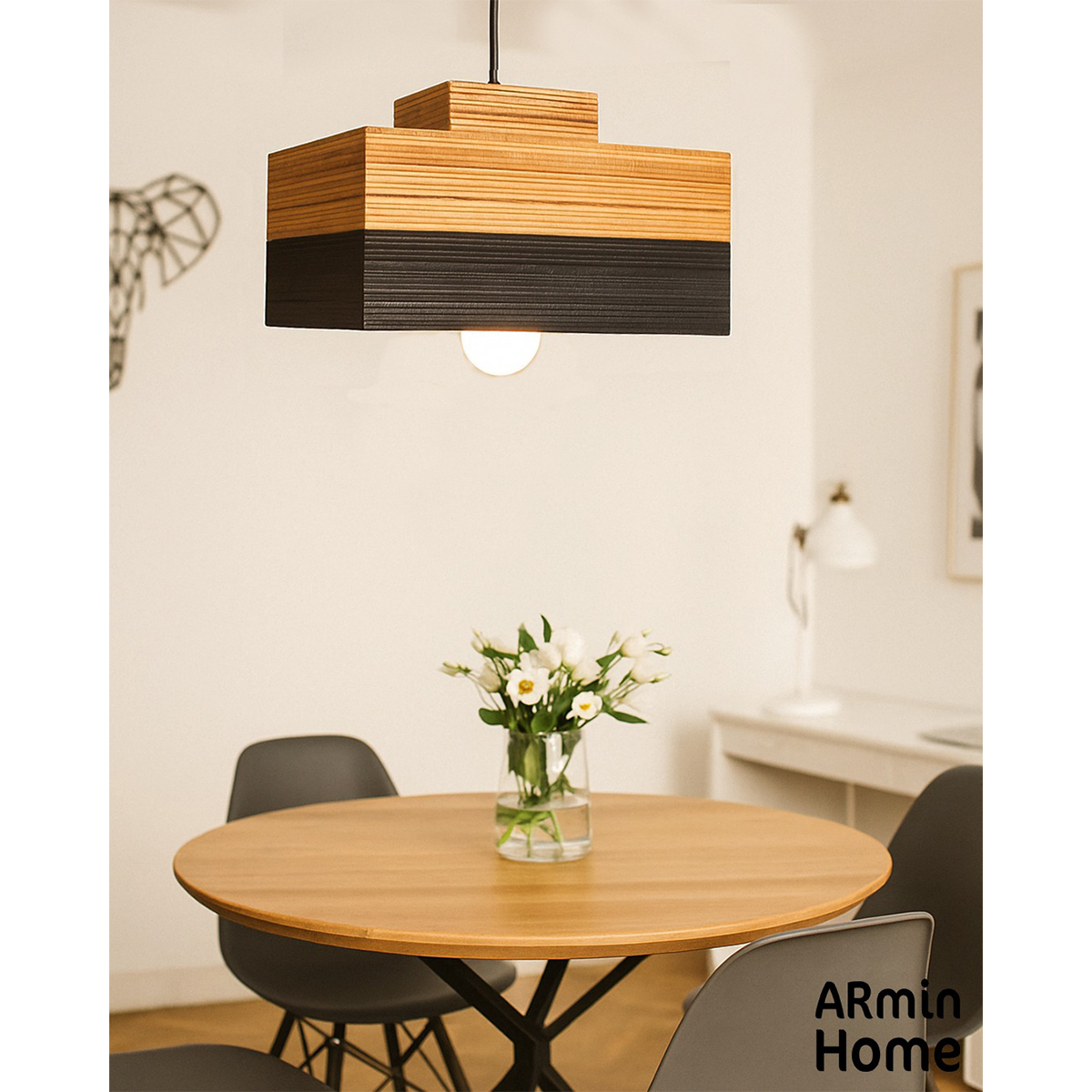 Suspension design Armin Home en bois pour un éclairage moderne et naturel.