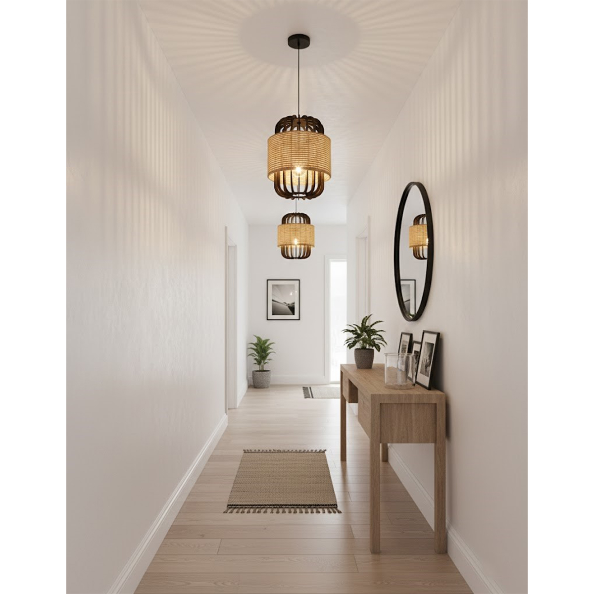 Suspension Fanous noir Lampes design Armin Home en bois Suspension ajourée en lamelles de bois et fibre naturelle de style vintage fabrication artisanale د.ت59.000