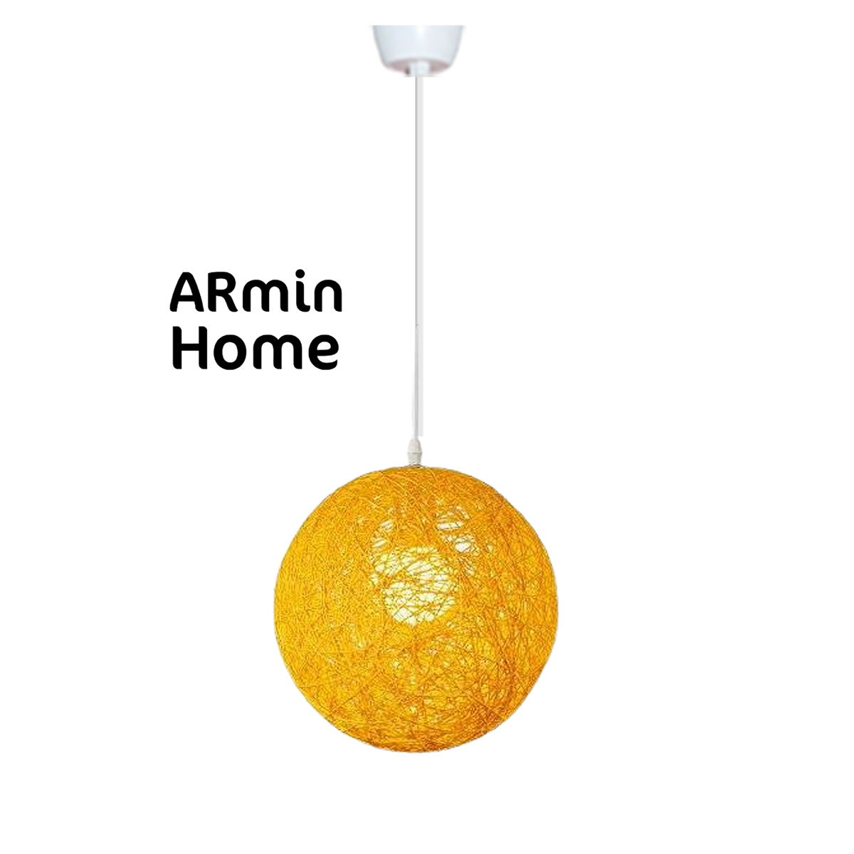 AccueilMaison & décoLuminaire Suspension globes jaune en rotin design Armin Home tressé à la main en fil de rotin de style vintage fabrication artisanale T1