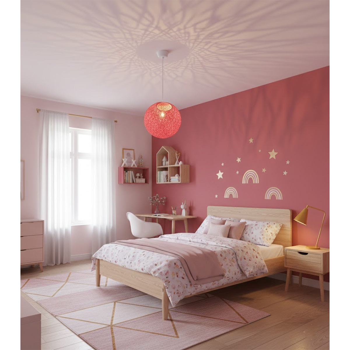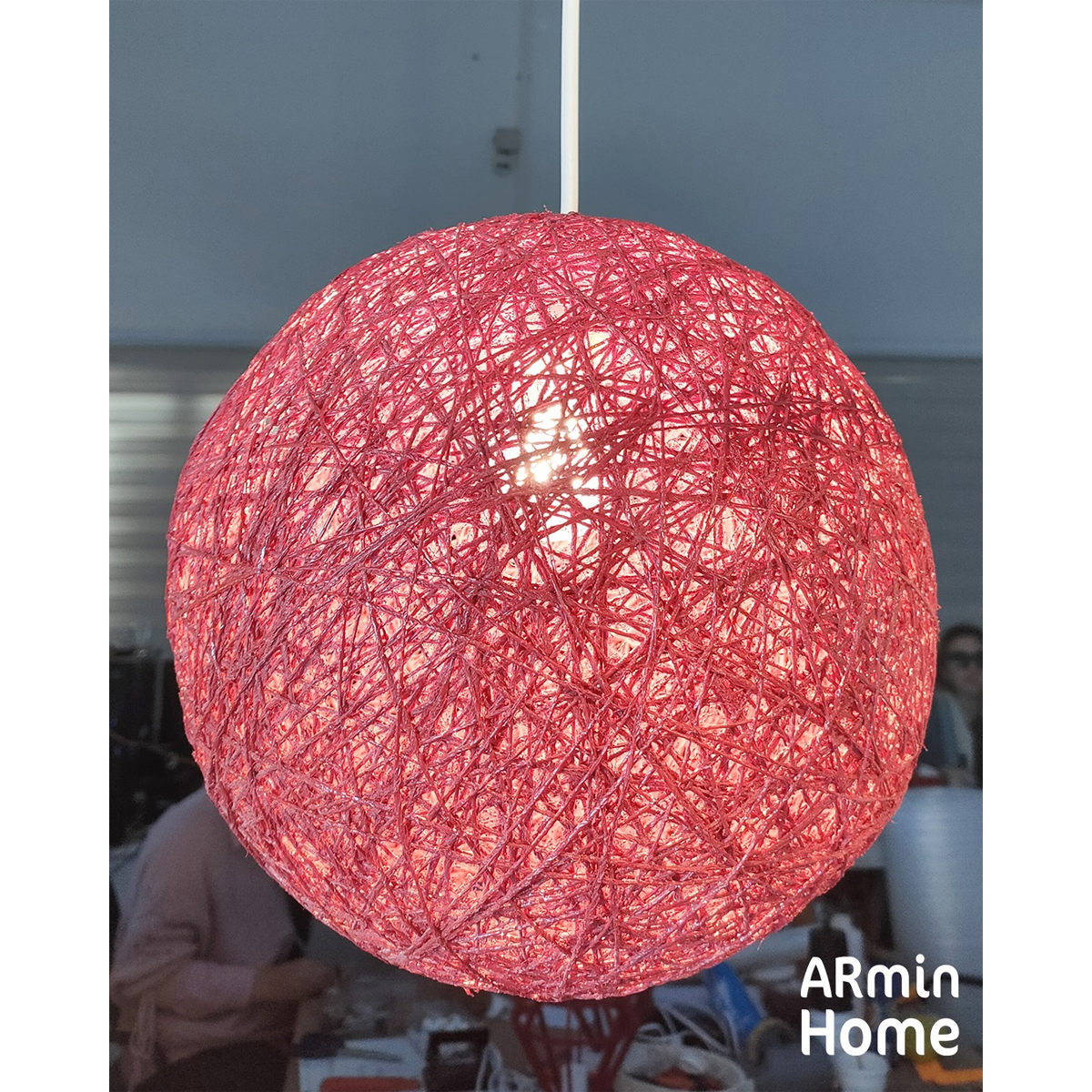AccueilMaison & décoLuminaire Suspension globes rose fuchsia en rotin design Armin Home tressé à la main en fil de rotin de style vintage fabrication artisanale T1