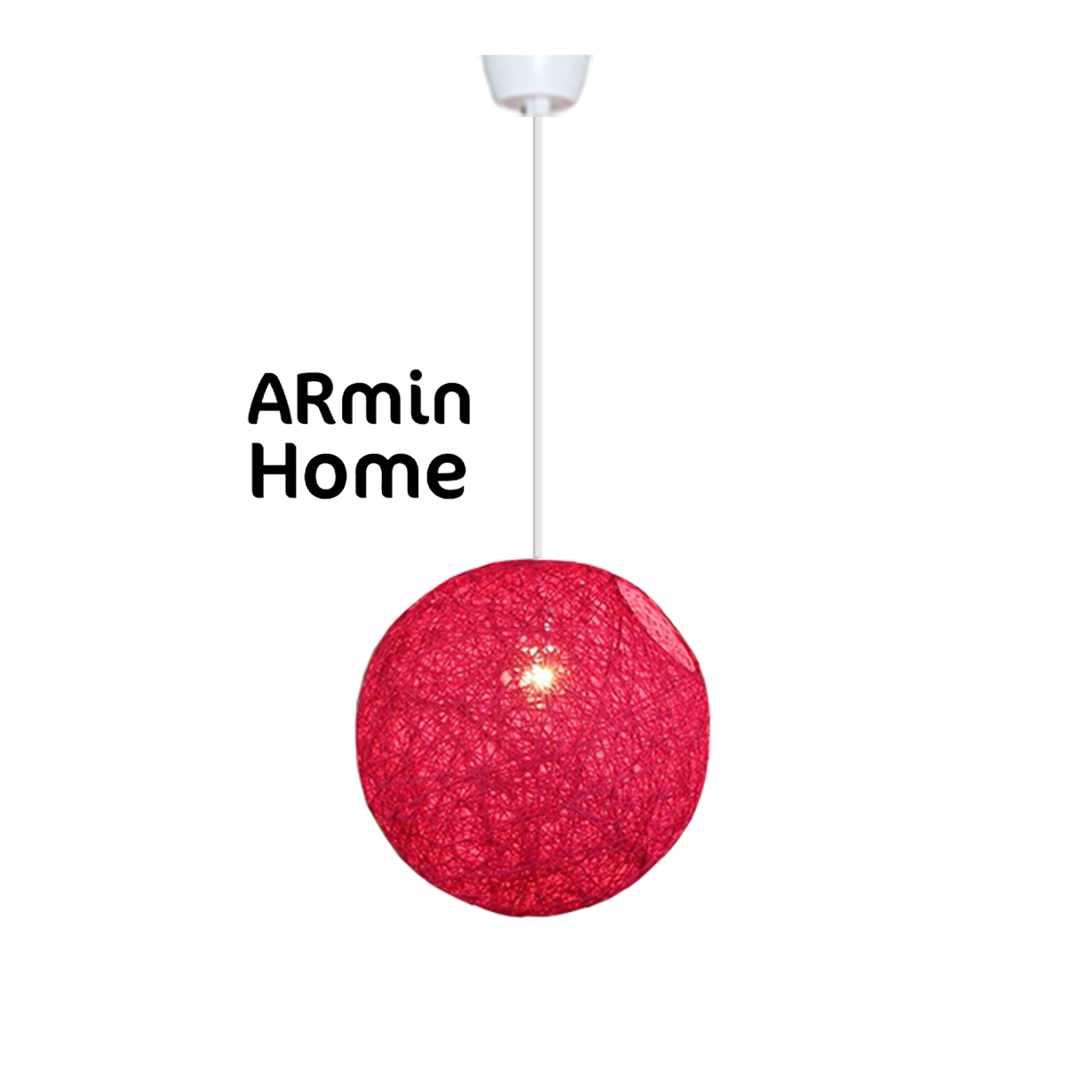 AccueilMaison & décoLuminaire Suspension globes rouge en rotin design Armin Home tressé à la main en fil de rotin de style vintage fabrication artisanale T1