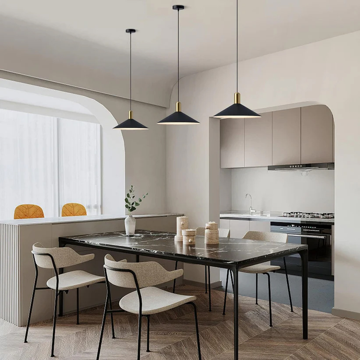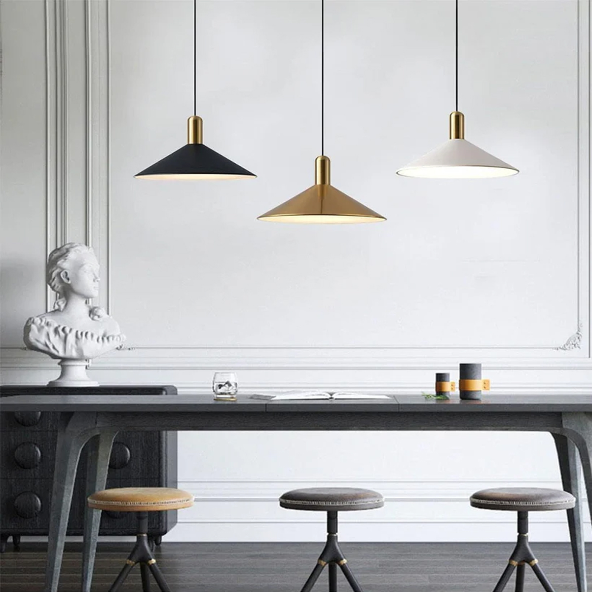 Suspension haute gamme en métal noir satiné de haute qualité au design retro en forme de Cône Triangle
