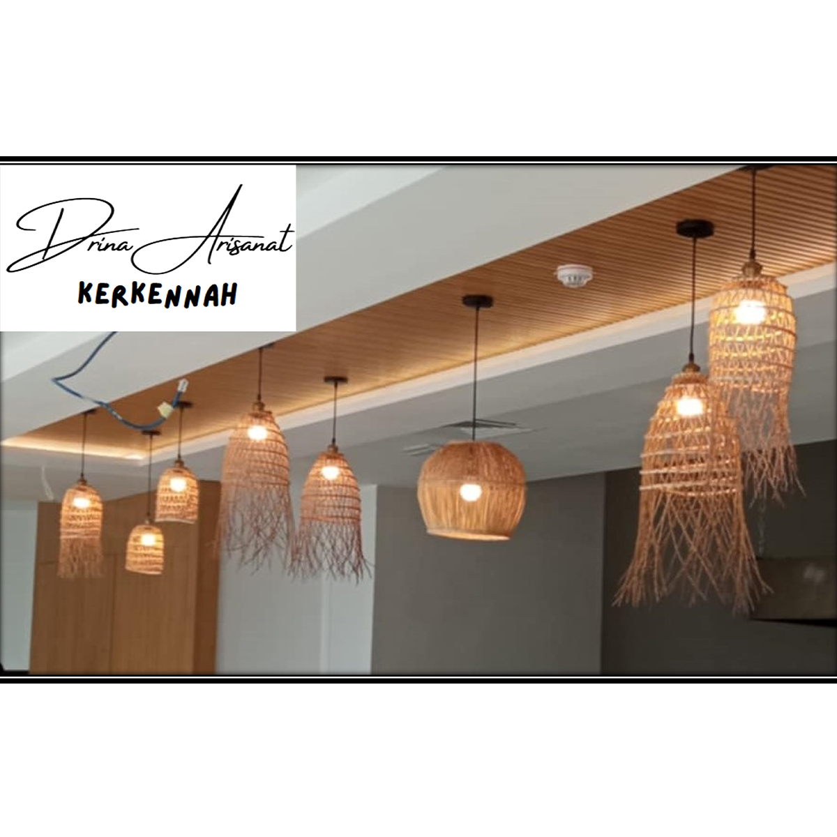 Suspension luminaire design demi drina ajouré fait main en fibre de palmier د.ت350.000