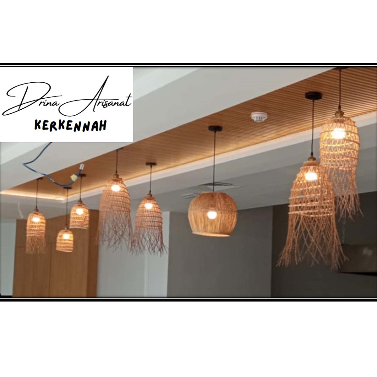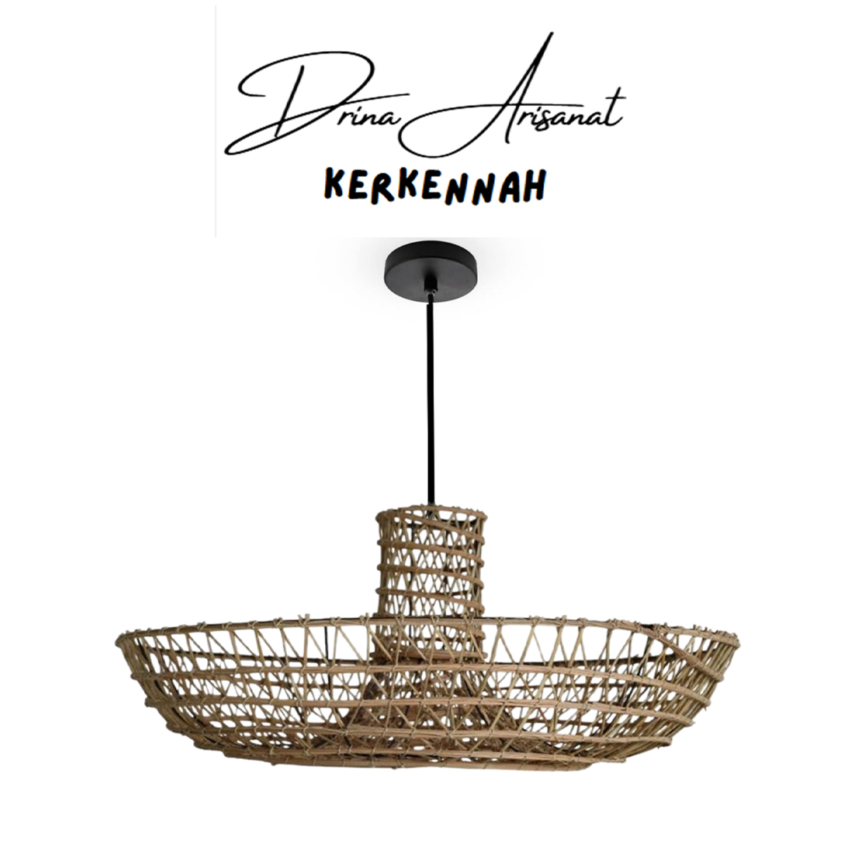 Suspension luminaire design demi drina ajouré fait main en fibre de palmier د.ت350.000