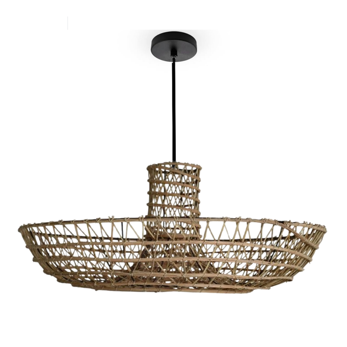 Fabrication artisanale durable : Entièrement fabriqué à la main, l’abat-jour Drina tressé à la main en fibre naturelles de palmier, structure en acier traitée, peinture écologique durable, résistant aux hautes températures, résistant à la moisissure, respectueux de l’environnement et sain.