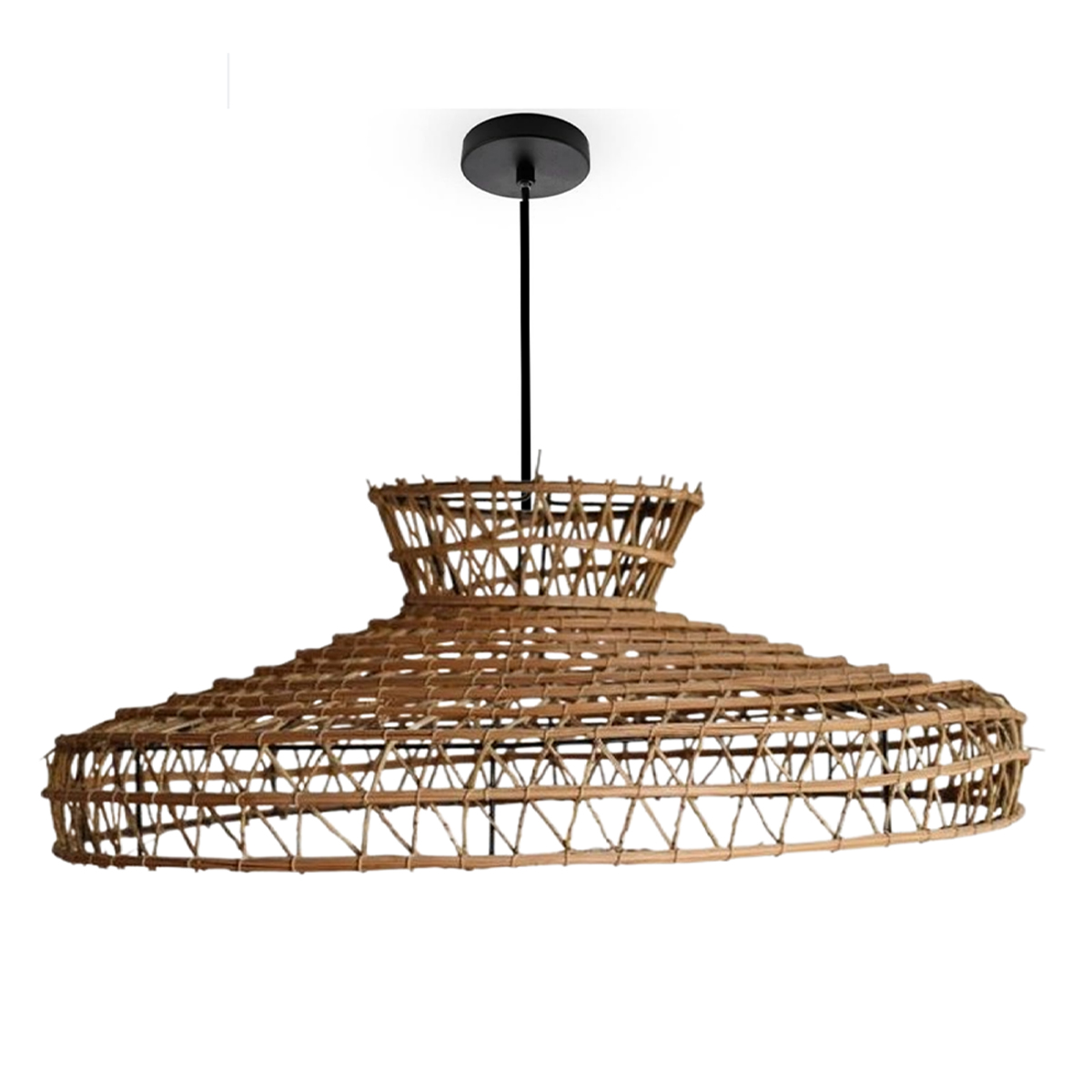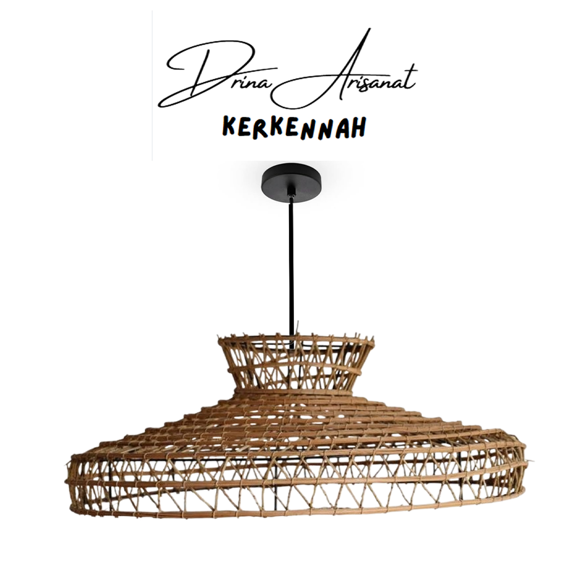 Fabrication artisanale durable : Entièrement fabriqué à la main, l’abat-jour Drina tressé à la main en fibre naturelles de palmier, structure en acier traitée, peinture écologique durable, résistant aux hautes températures, résistant à la moisissure, respectueux de l’environnement et sain.