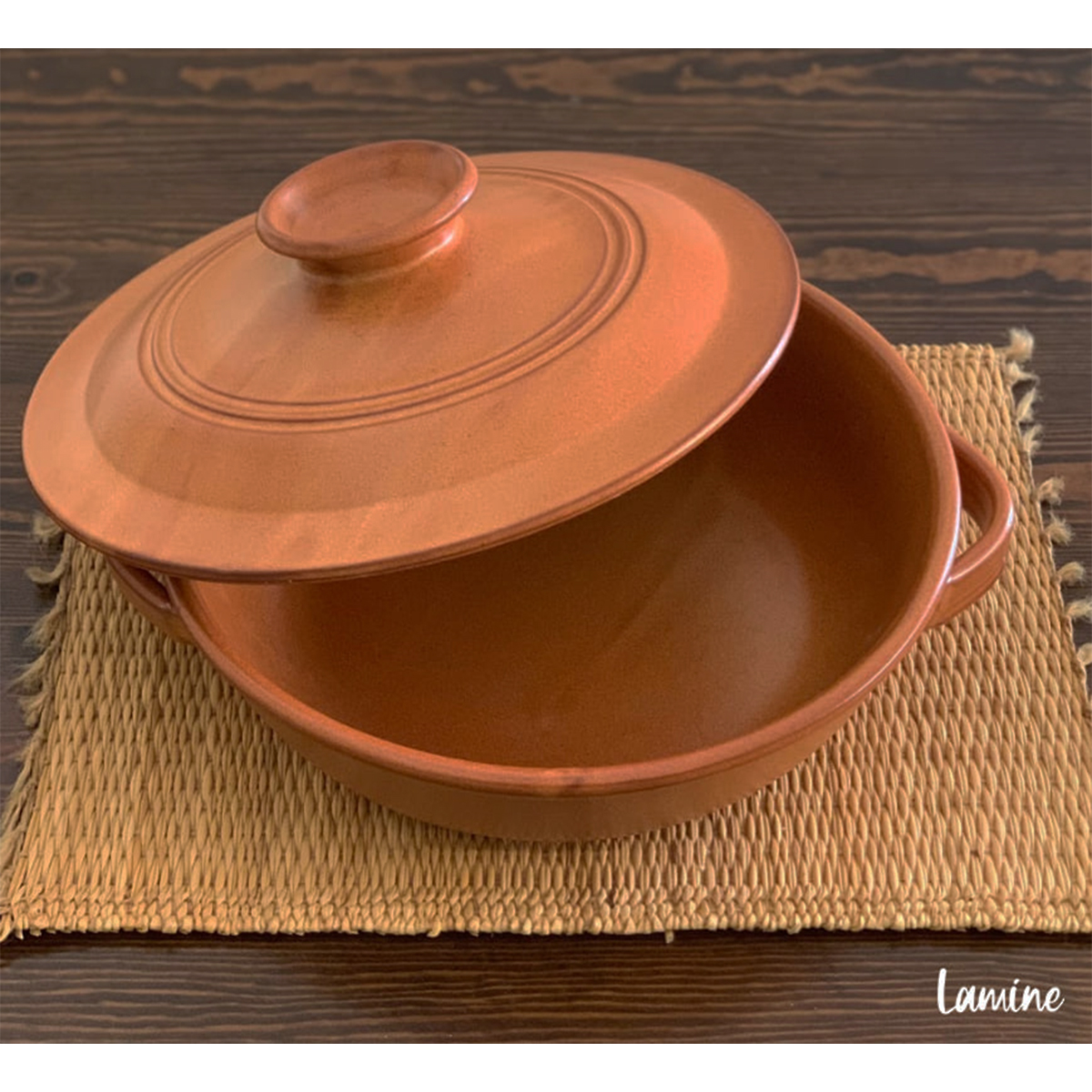 Cocotte ronde en caramel effet cuir avec couvercle Ustensiles de cuisson en terre Cuite 2 Litres Rupture de stock