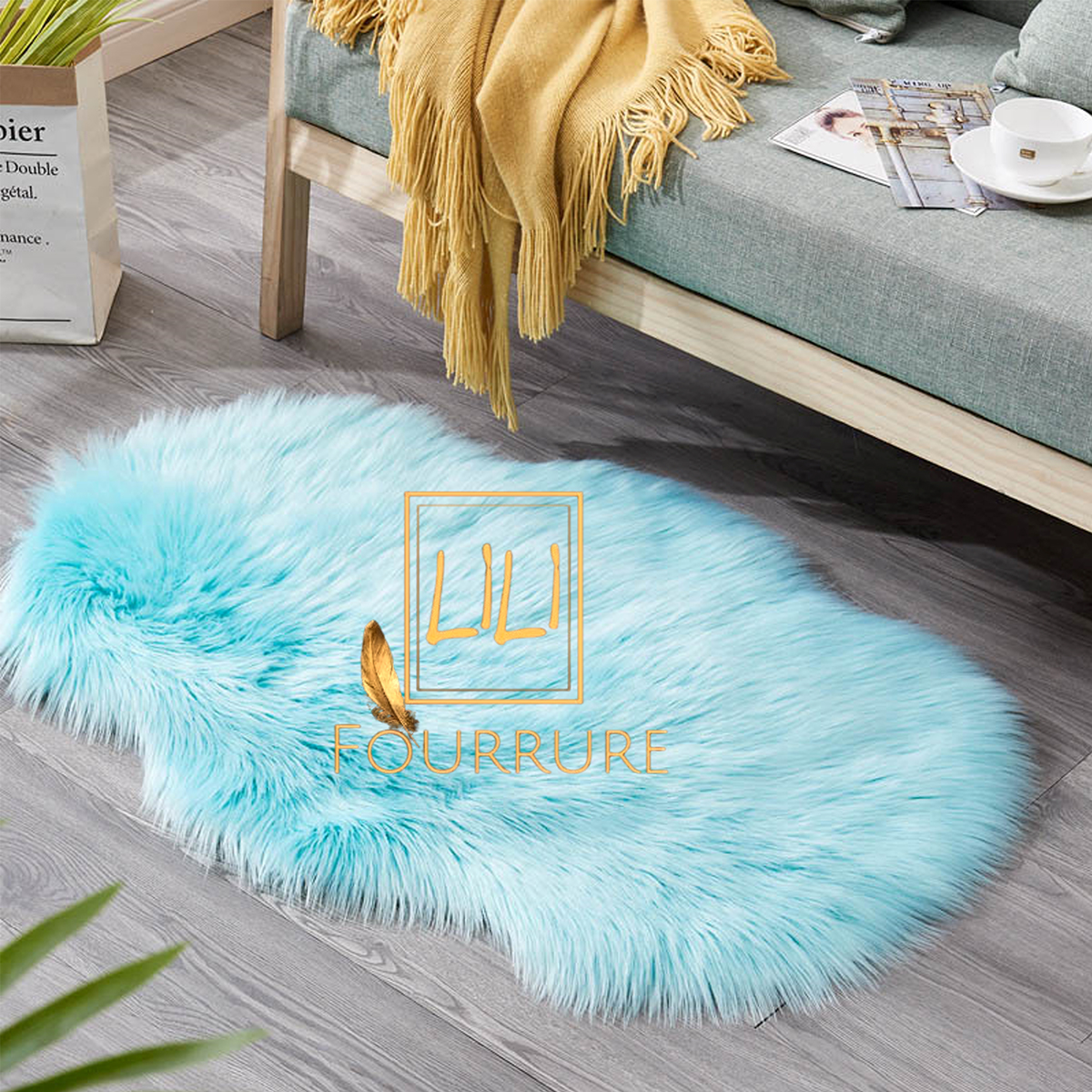 AccueilMaison & déco Tapis en fausse fourrure haut de gamme design vague en bleu ciel , tapis de sol antidérapant