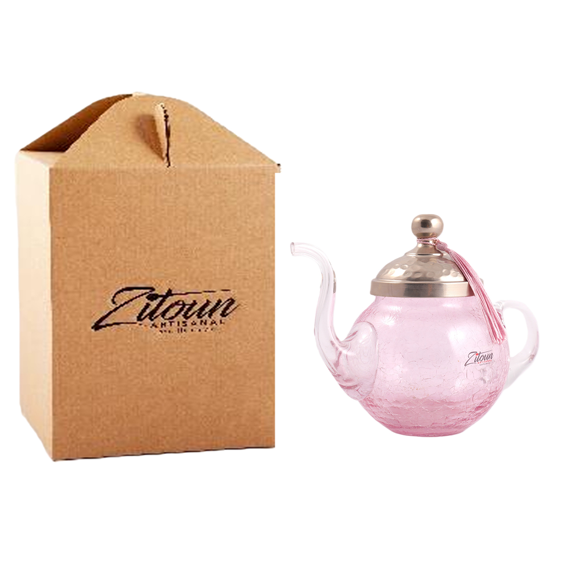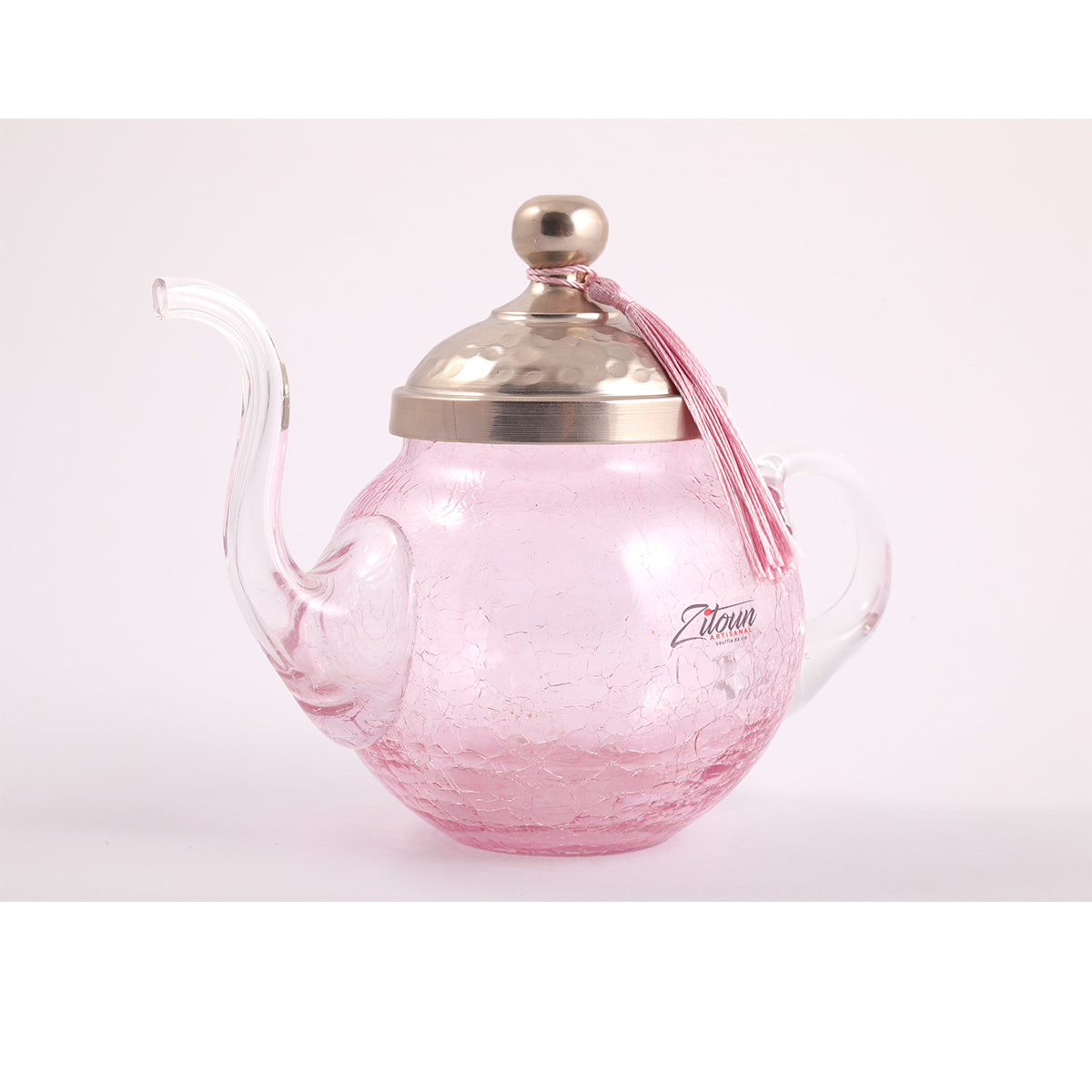 Théière MM rustique en verre soufflé craquelé design arabesque fait à la main
