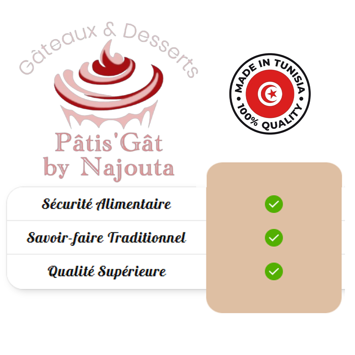 Pâtis’Gât by Najouta : pour vous offrir la meilleure qualité à un prix accessible et préserver l’emploi, nous sommes fiers de vous offrir des produits de fabrication artisanale à 100% fabriqués en Tunisie