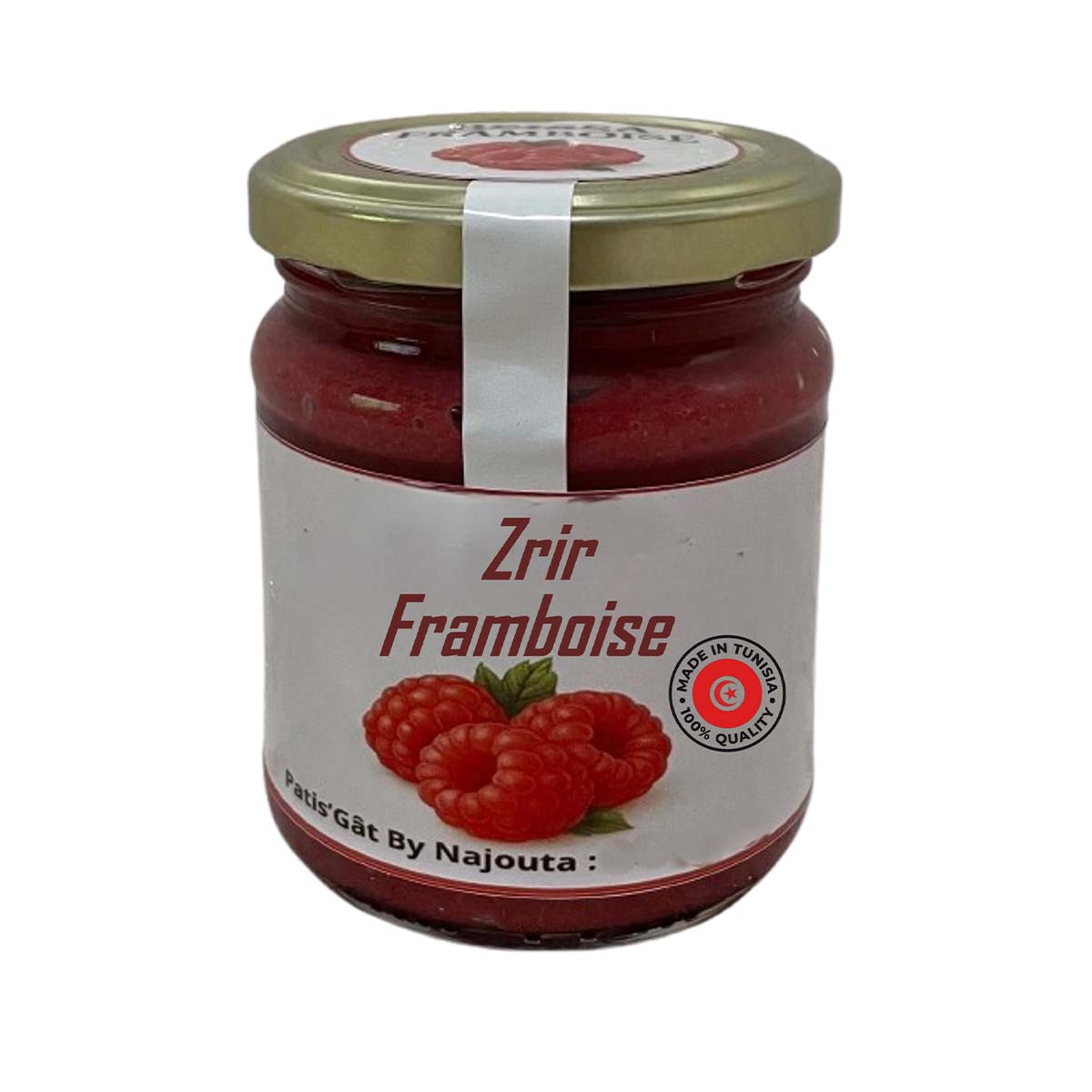 Nos produits de qualité supérieure sont des œuvres réalisées dans notre atelier. Le Zrir est une spécialité tunisienne emblématique, souvent offerte lors des célébrations de naissance pour marquer ces moments uniques de joie et de partage. Savourez notre Zrir Tradition au Framboise , préparée à partir d’ingrédients 100% naturels de qualité supérieures.