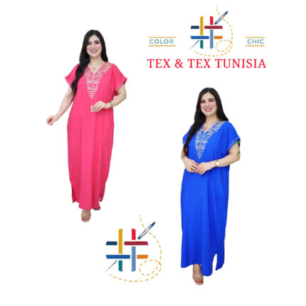 Jebba fashion printemps-été 2025 – Jebba « Chams » en Crêpe haut de gamme en broderie motif chams sur la poitrine, en bleu roi