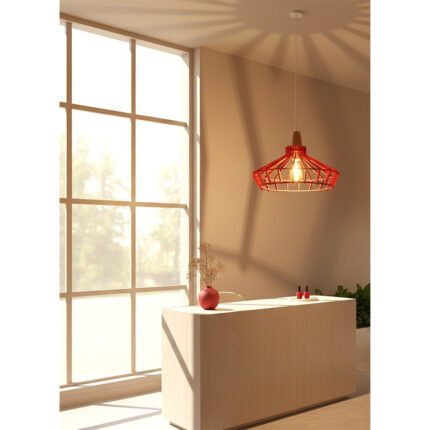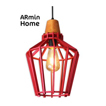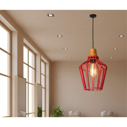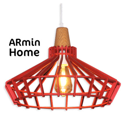 Suspension design Armin Home rouge en bois Suspension ajourée en lamelles de bois de style vintage fabrication artisanale T1