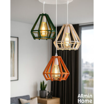 Suspension design Armin Home rouge en bois Suspension ajourée en lamelles de bois de style vintage fabrication artisanale T4