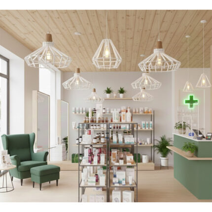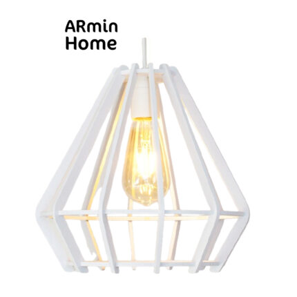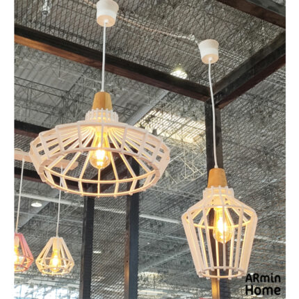 Suspension design Armin Home blanc en blanc Suspension ajourée en lamelles de bois de style vintage fabrication artisanale T4