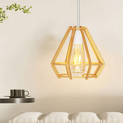 Suspension design Armin Home doré en bois Suspension ajourée en lamelles de bois de style vintage fabrication artisanale T4