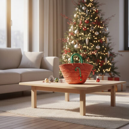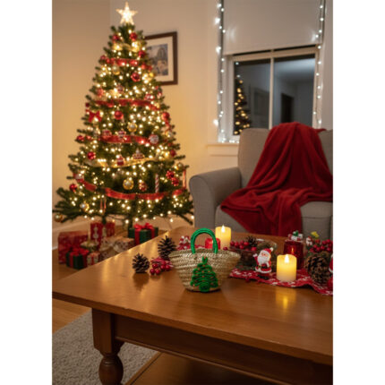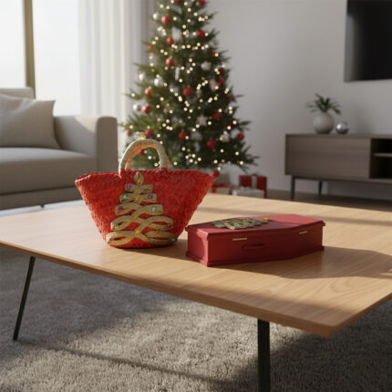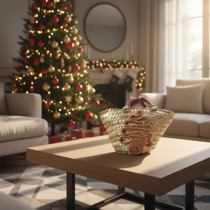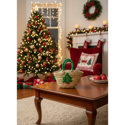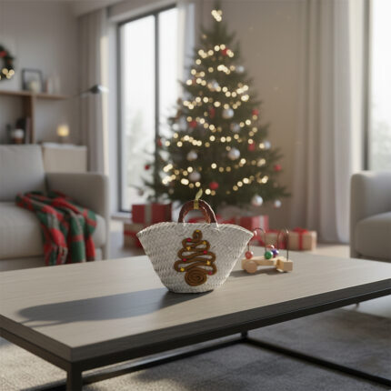 Mini couffin cadeau de Noël haut de gamme motif festif en fibre de palmier fait main