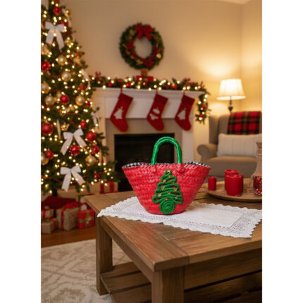 Mini couffin cadeau de Noël haut de gamme motif festif en fibre de palmier fait main FMM 2512