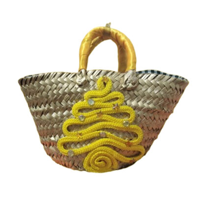 Couffin fashion haute gamme en fibre végétale naturel avec deux poignées en cuir véritable texturé motif mauvaise œil brodée main MM FMM 2204