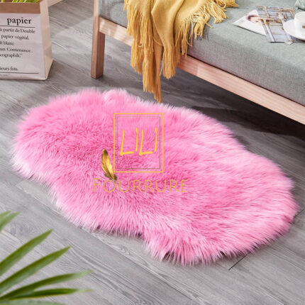 Tapis en fausse fourrure haut de gamme design vague en rose fuchsia, tapis de sol antidérapant