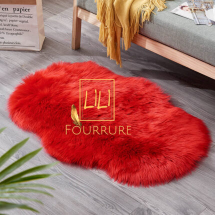 Tapis en fausse fourrure haut de gamme design vague en rouge, tapis de sol antidérapant
