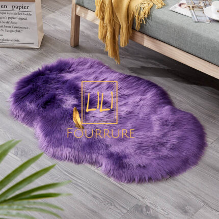 Tapis en fausse fourrure haut de gamme design vague en mauve, tapis de sol antidérapant