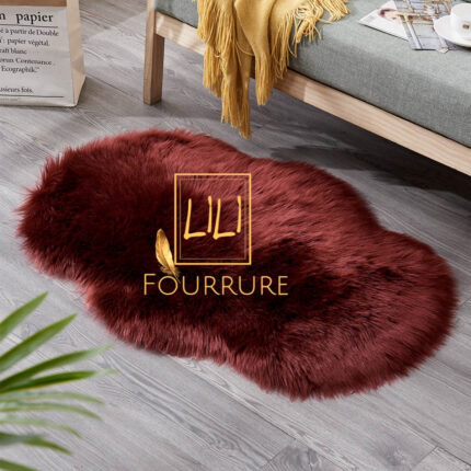 Tapis en fausse fourrure haut de gamme design vague en rouge bordeau, tapis de sol antidérapant