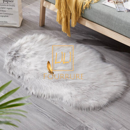 Tapis en fausse fourrure haut de gamme design peau de mouton en gris anthracite, tapis de sol antidérapant