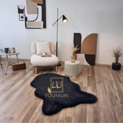 Tapis en fausse fourrure haut de gamme design peau de mouton en noir, tapis de sol antidérapant