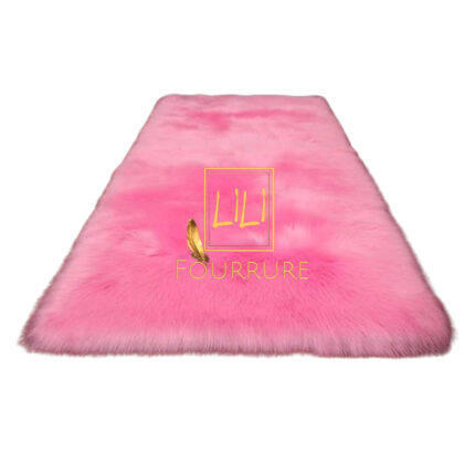 Tapis rectangulaire en fausse fourrure haut de gamme en rose, tapis de sol antidérapant