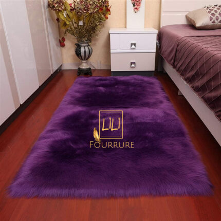 Tapis rectangulaire en fausse fourrure haut de gamme en mauve, tapis de sol antidérapant