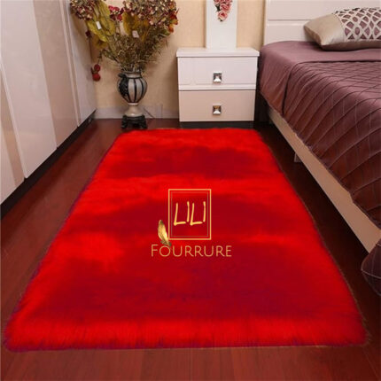Tapis rectangulaire en fausse fourrure haut de gamme en rouge, tapis de sol antidérapant