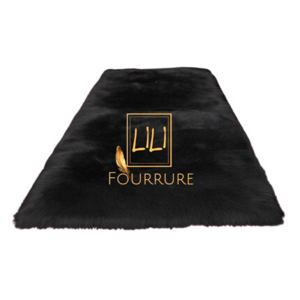 Tapis rectangulaire en fausse fourrure haut de gamme en noir , tapis de sol antidérapant