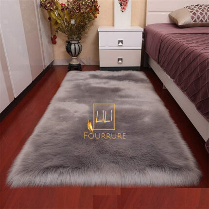 Tapis gris rectangulaire en fausse fourrure haut de gamme en gris clair, tapis de sol antidérapant