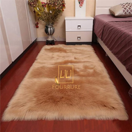 Tapis rectangulaire en fausse fourrure haut de gamme en camel, tapis de sol antidérapant