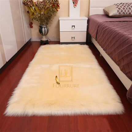 Tapis rectangulaire en fausse fourrure haut de gamme en blanc , tapis de sol antidérapant